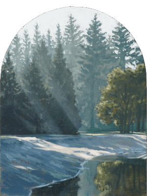 Bosvijver Zwarte Dennen Olieverf op paneel 30x23cm (beschikbaar)