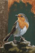 Roodborst 2 Olieverf op paneel 15x10cm (beschikbaar)