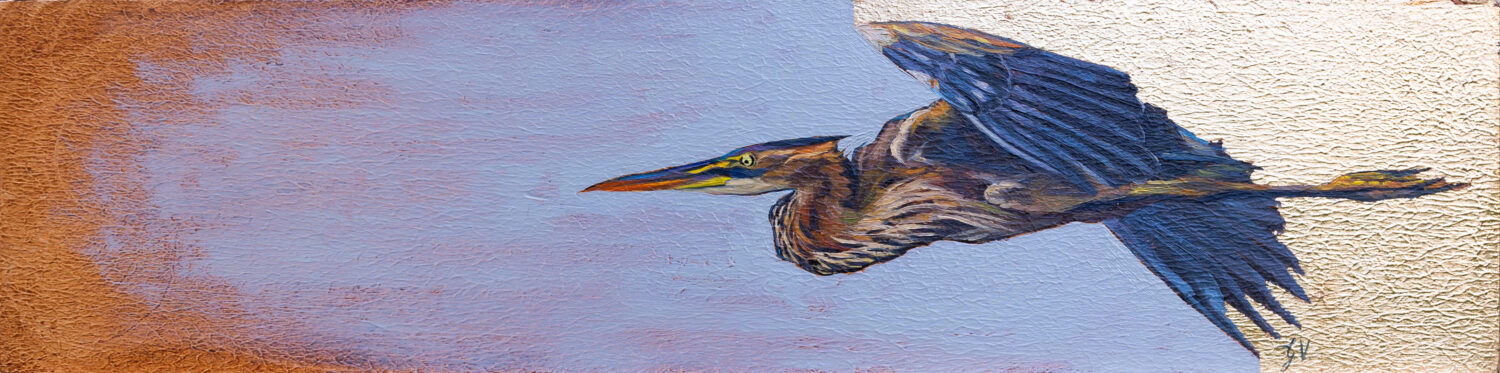 Purperreiger 1 Olieverf op paneel 11x44cm (beschikbaar)