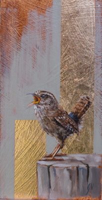Winterkoning Olieverf op paneel 20x8cm (verkocht)